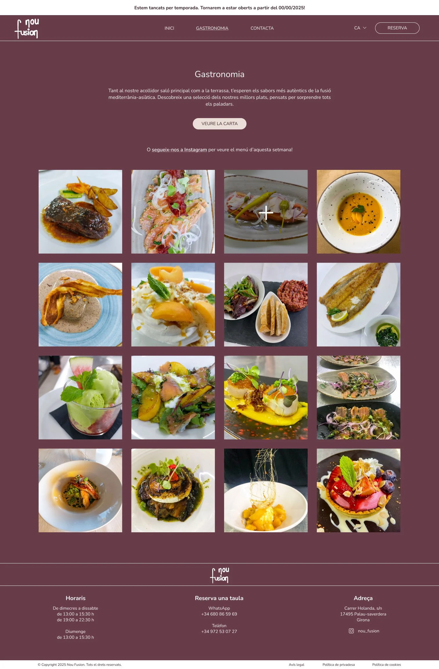 Per al redisseny de la seva web vaig buscar reflectir la seva essència, creant un espai digital modern i funcional. En tot moment s’ha dissenyat seguint la seva identitat visual i la seva paleta de tonalitats morades. L’objectiu era transmetre la calidesa del restaurant i connectar amb un públic local i internacional.